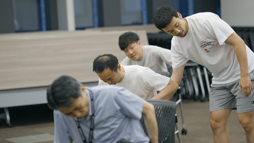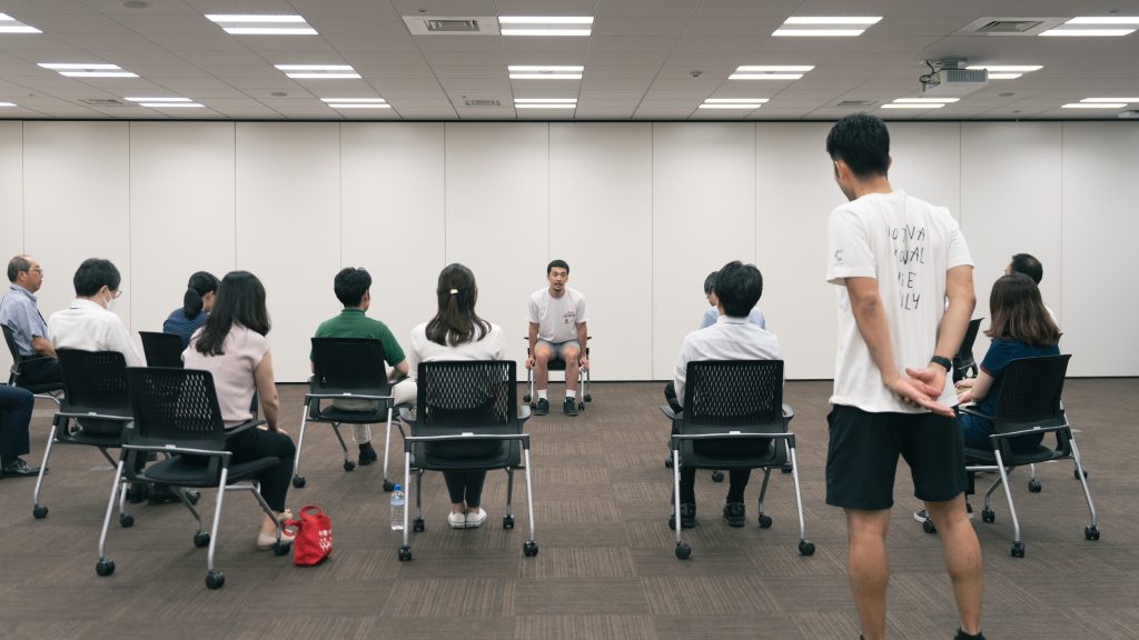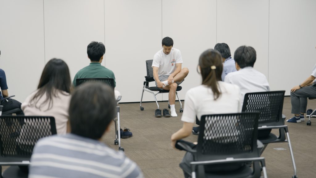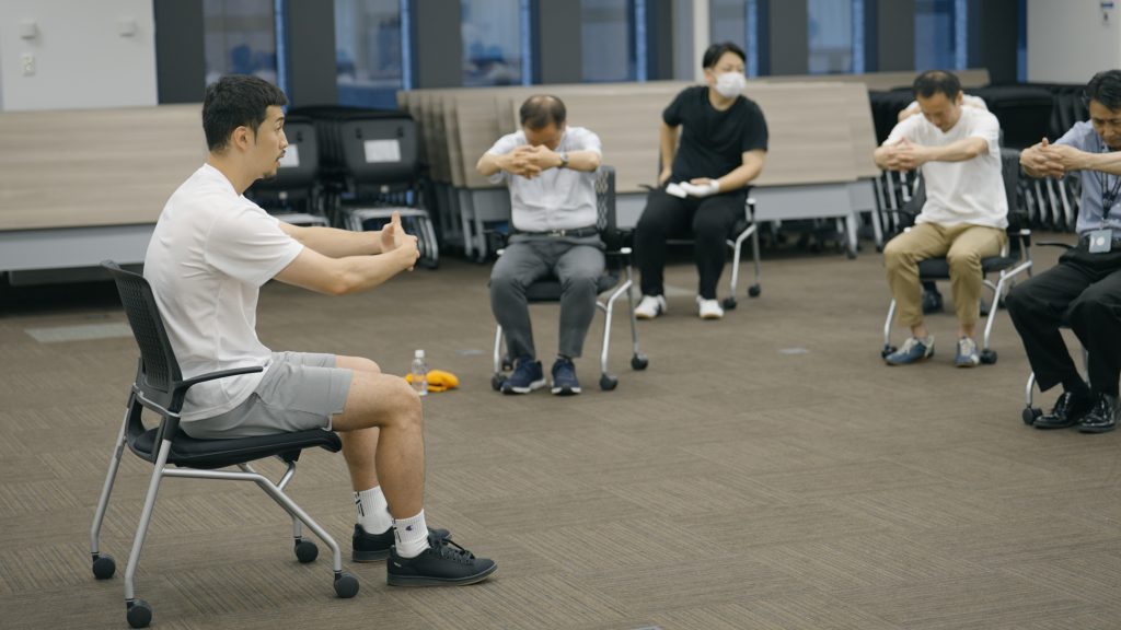 2023年6月28日、三菱総合研究所株式会社にて、健康経営法人プログラム「habit5%」の一環として、Bリーグ熊本ヴォルターズ所属(現在は福島ファイヤーボンズ所属)で日本バスケットボール選手会会長の田渡凌選手を講師に迎え、職場で簡単に実践できる「椅子に座ったまま”でも”出来るストレッチ&トレーニング」が開催されました。